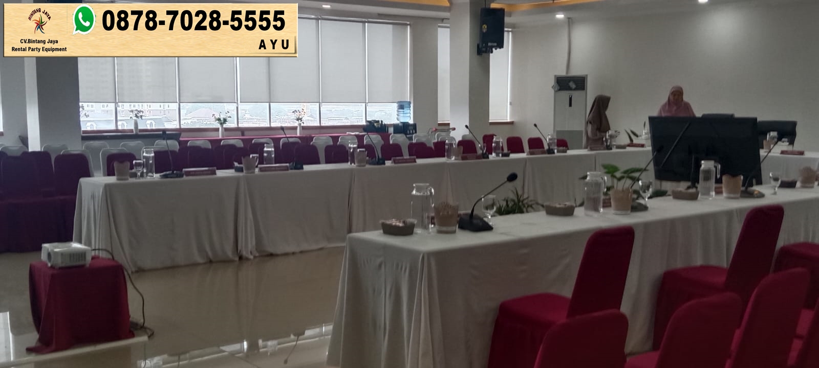 Segera hubungi kami Bintang Jaya untuk suksesnya acara anda. kami memberikan pelayanan yang terbaik, siap antar dan siap setting. Selanjutnya bisa juga datang langsung ke kantor atau gudang kami untuk mendapatkan penawaran yang terbaik.