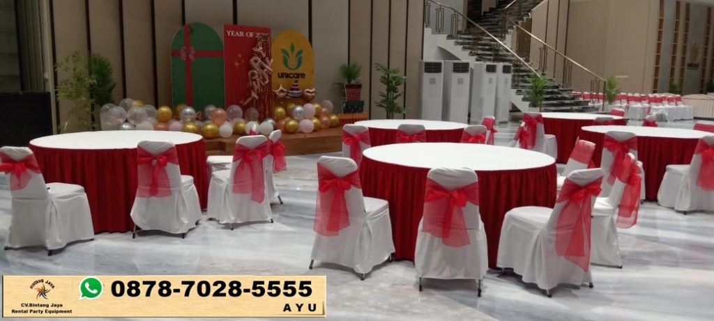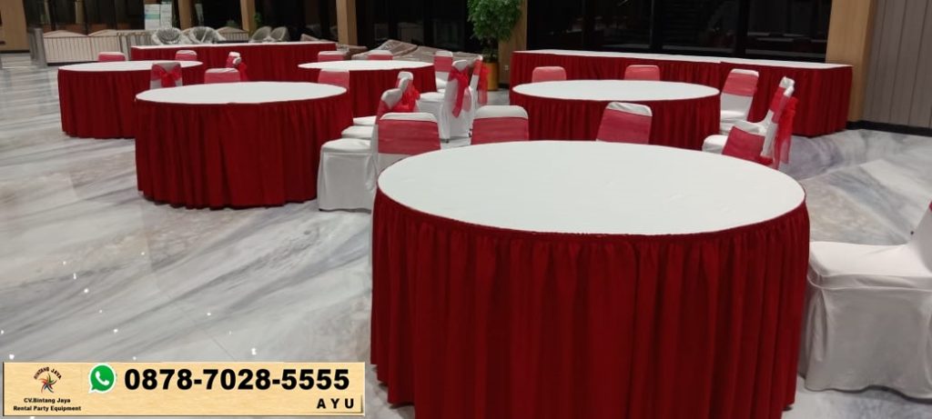 Rental meja bundar dan kotak cover merah putih Jakarta. Kami adalah pusat jasa sewa alat pesta yang siap membantu anda mewujudkan acara impian dengan harga terjangkau. Dengan berbagai pilihan alat dan perlengkapan, kami menjamin anda akan menemukan semua yang anda butuhkan untuk membuat pesta anda tak terlupakan.