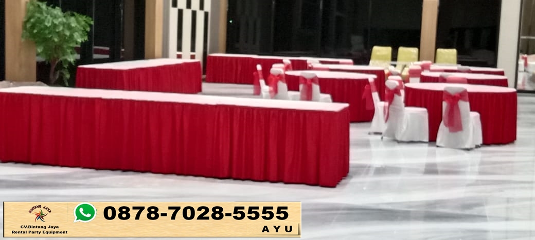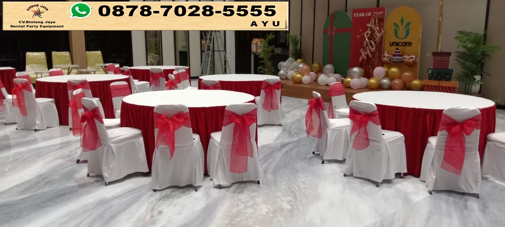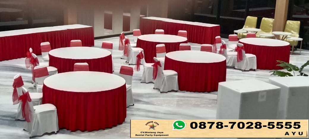 Rental meja bundar dan kotak cover merah putih Jakarta. Kami adalah pusat jasa sewa alat pesta yang siap membantu anda mewujudkan acara impian dengan harga terjangkau. Dengan berbagai pilihan alat dan perlengkapan, kami menjamin anda akan menemukan semua yang anda butuhkan untuk membuat pesta anda tak terlupakan.