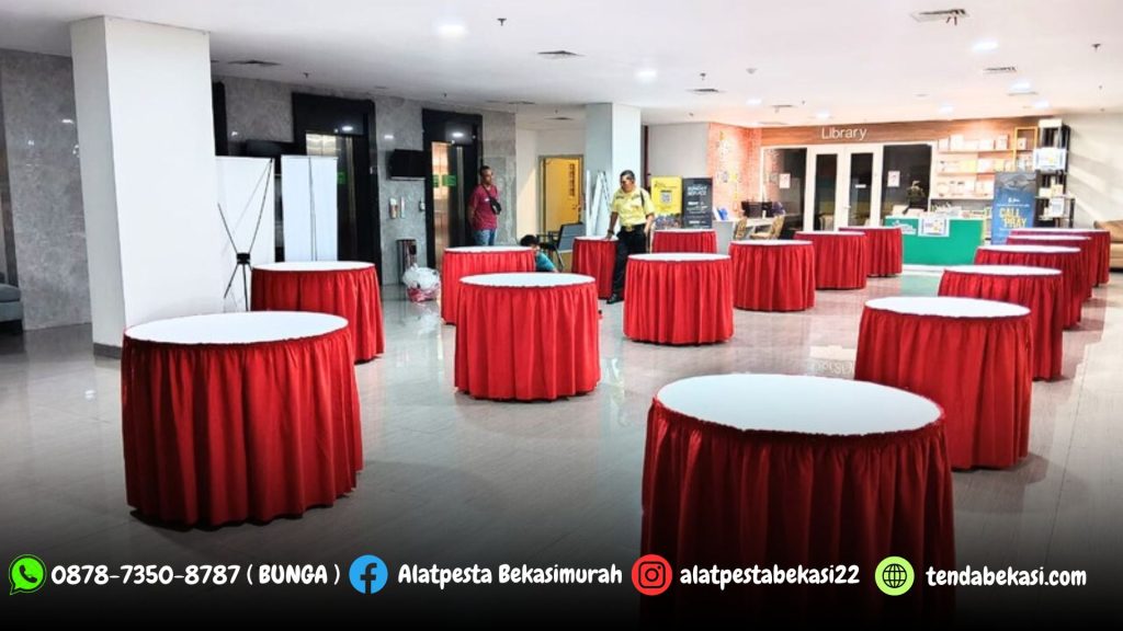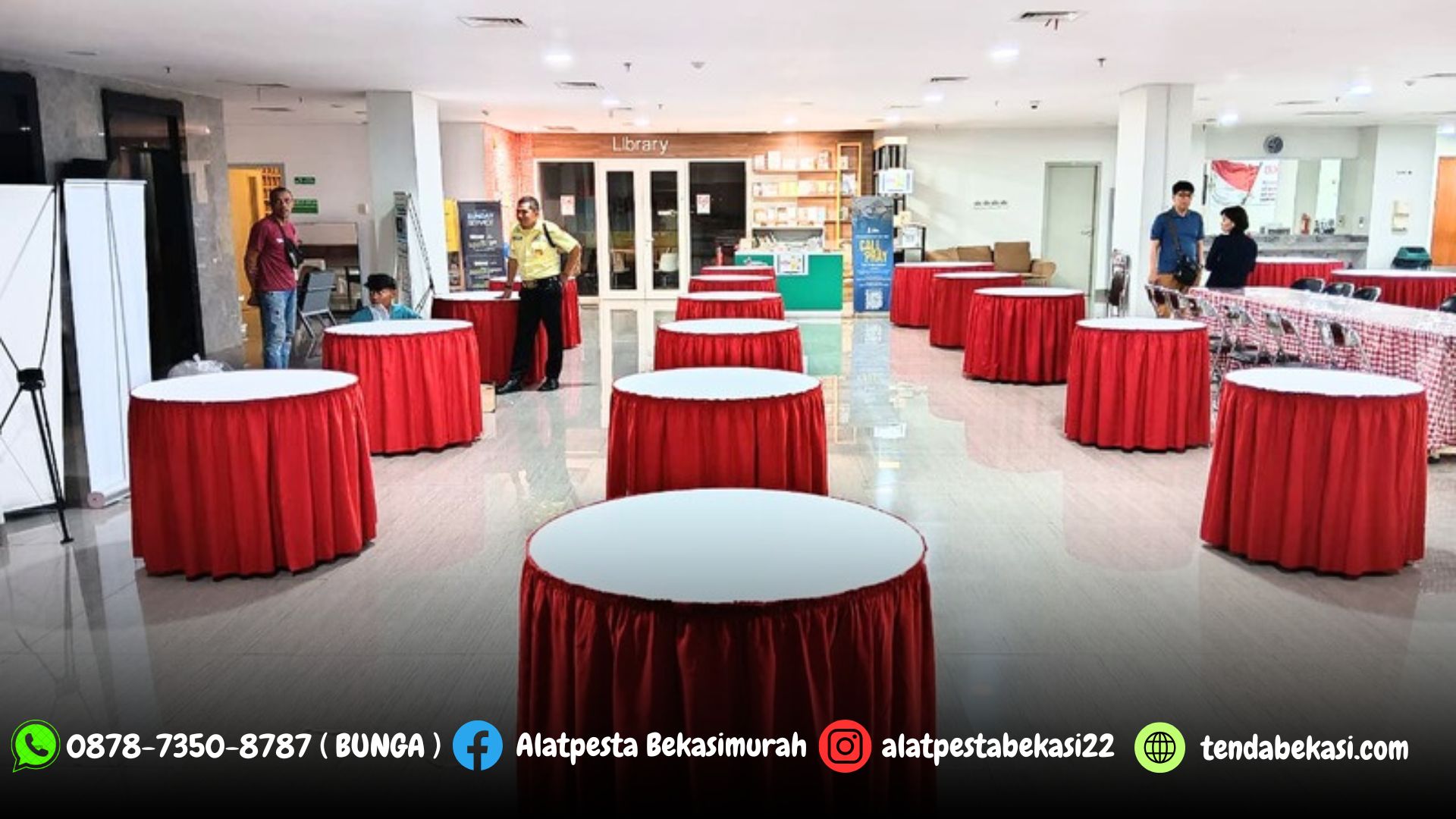 Jasa sewa alat pesta kami CV.BINTANG JAYA EVENT Menyediakan Rental Round Table Meja Bundar Diameter 120cm Jakarta dengan pengiriman dan pemasangan langsung sesuai permintaan customer.