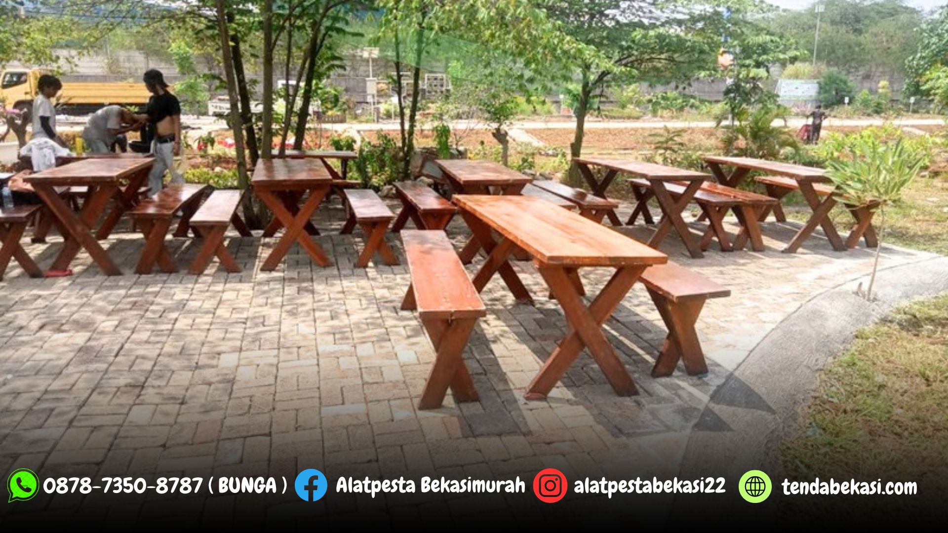 Meja taman ini bisa anda sewa lengkap dengan bangku taman panjang ataupun bangku taman single. Selain meja taman type xtra, kami juga menyediakan meja taman 2in1, meja taman bulat, meja taman alpha dan meja taman magic.
